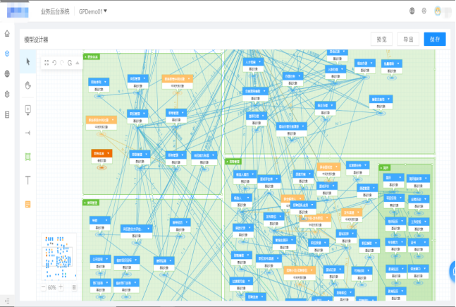 梳理完所有的业务流程、业务实体、数据实体后可以将对象作出根据不同业务域的清晰层级划分,如下图: