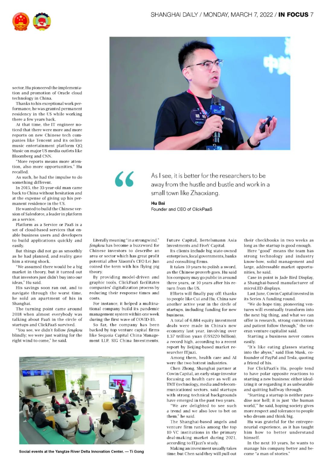 【创业故事】《上海日报》专访ng28南宫国际创始人、CEO胡柏,探究其创业背后的故事
